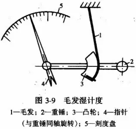 毛发湿度计构造原理图: